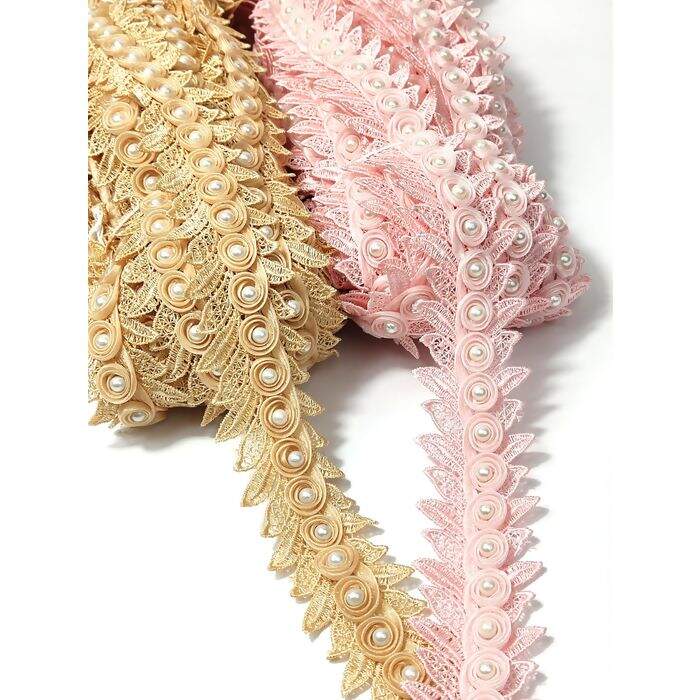 Aplicação de Guipir com Pérolas no meio- 1 Metro Selecione a Cor