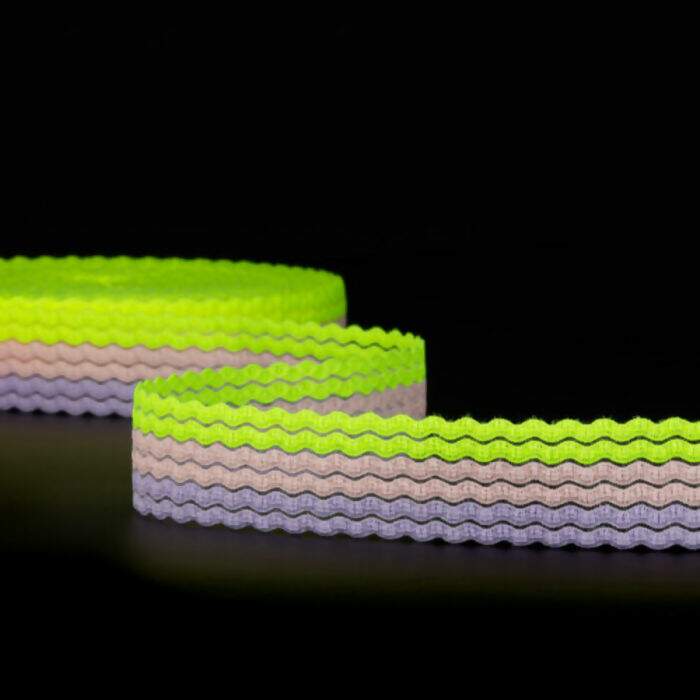 Descrição Elástico Margot 32 - 20 metros (lilás , rosa e verde neon)