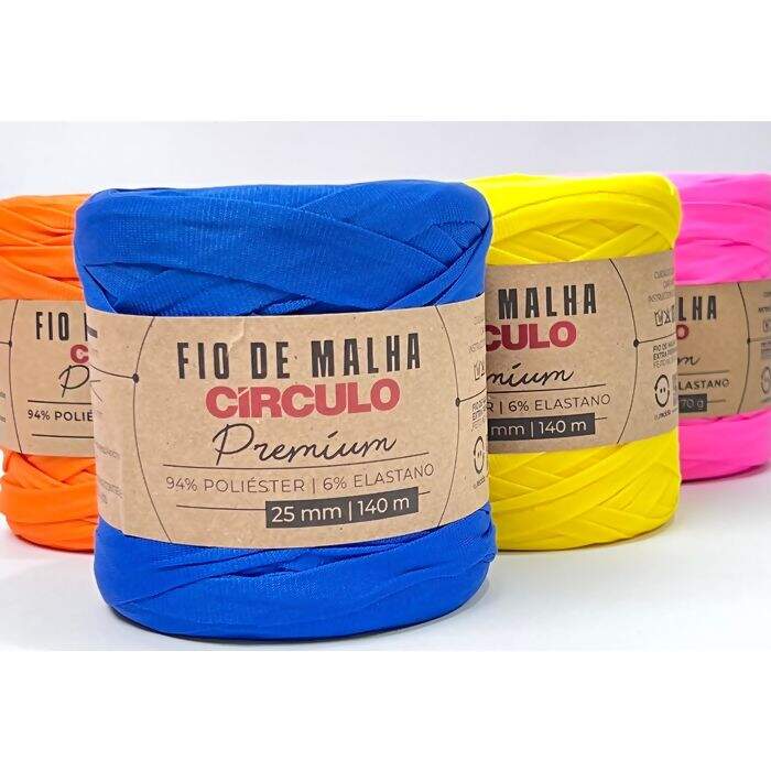 Um fio de malha inovador, premium que não tem emendas, é regular na espessura, possui uma cartela de cores ampla, com tons vibrantes, neon e candycolors. Sua trama é fácil e macia de manusear devido a sua composição: 94% Poliéster e 6% Elástano, sendo ideal para cestos, bolsas, peças para decoração em geral, e também dispõem do o sistema Easy Pull - Puxe Fácil, tornando mais rápido e fácil de trabalhar com fio!