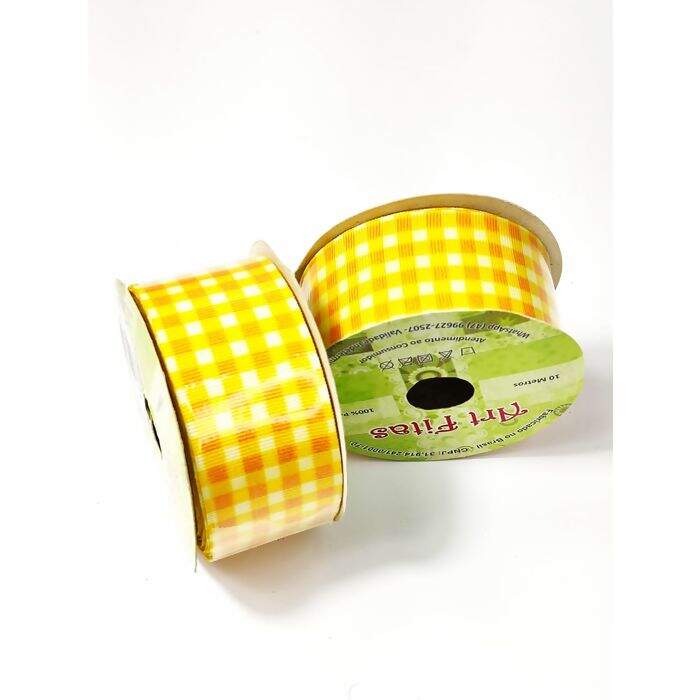 Descrição Fita de Gorgurão Art Fitas 38mm xadrez amarelo 10mts