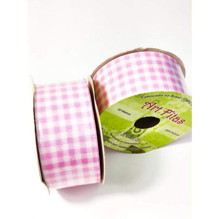 Descrição Fita de Gorgurão Art Fitas 38mm xadrez Rosa 10mts
